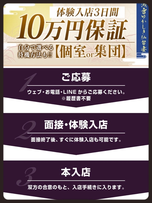 ❶、3日体験入店で10万円保証