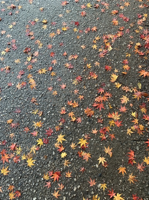 いつも通る道に、紅葉の絨毯が出来てました